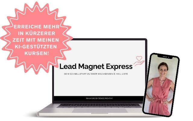 Egal, ob du bereits online sichtbar bist und viele Follower hast oder gerade erst am Anfang stehst – Lead Magnet Express löst zeiteffizient das erste Problem, dem du begegnest, wenn du dein Business automatisieren möchtest und noch keine gefüllte E-Mail Liste besitzt. Dieser KI- gestützte Kurs hilft dir, den ersten bedeutenden Schritt zeiteffizient zu erledigen, um deine Sichtbarkeit zu erhöhen, mehr Leads zu generieren und deinen Umsatz zu steigern, während du gleichzeitig weniger Zeit in sozialen Netzwerken verbringst!